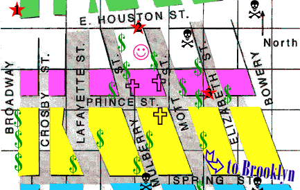 We are happy to see less of the limo drawn trend seekers and more kids in blow up pools curbside with dad on the barbecue. Like summer in Manhattan is supposed to be. If your friends from Germany still insist on giving it a whirl, navigating through Nolita's murky waters can be tough, so we have provided you with this highlighted map to get you through to the other side.