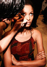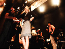 | Fashion Week shrank to invisible proportions as the horrific ongoings of September 11th reared their ugly heads smack dab in the middle of the spring 2002 collections. From the most sardonic vantage point, one can conclude that now may be time to take a closer look at an industry so heavily padded in non-reality and try to take it to some greater depths. One strong, fashionable force rose from the ashes as it rallied the efforts of twenty seven designers, sixty models and countless industry veterans, raising money and morale to aid victims and survivors of the WTC attack. Fashion Stands Tall was pulled together in record time, a mere week after the devastation, by the tireless and single minded vision of one lone make-up artist, as Jason Hayes of Brooklyn, New York set out to do some good. Armed with nothing but a strong will, a telephone and enough cash for liability insurance, Jason orchestrated everything from the music and staging help from Parson's - to the casting which paid homage to all ages (ranging from 16-50) as he contagiously attracted an unexpected turn-out of press and support. Negative initial responses from unwilling patrons ("Just what do we get out of this?") soon snowballed into "Just tell us what to do", with only two designers representing no-shows at curtain time. As participating designer Fiona Walker eloquently put it, "We certainly separated the sheep from the goats, darling".