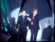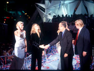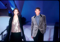 One of the strongest retail trends of the '90s was heavy emphasis on "lifestyle". So heavy that we often forgot all about how we looked while we were enjoying whatever lifestyle it was that we were emulating. Super sloppy mass market Urban Sportswear is on the downslide ever so slowly, but watch it happen. The gangsta scene will start to clean up nice. Even the Big Man on hip hop campus, Tommy H. himself, was recently quoted as saying "My children don't wear my clothes. I don't want them wearing my clothes. I like my son dressed well, as opposed to baggy jeans and sweatshirts", to national newspapers. Well Tom, you reap what you sew. Eventually this train of thought will have some trickle down effect on the wayward consumer. One thing that is certain not to change with this or any other millennium is the hard fact that whenever a public spectacle involving supermodels in New York occurs, model mogul Donald Trump will be found lurking nearby. The Times Square 2000 extravaganza was one such spectacle that we still don't understand. There was no common thread between any of the clothes shown, and it felt vaguely like VHI's fashion music awards without the music. The only thing keeping us from running out screaming was the prospect of one more glimpse of Uma Thurman's super cute younger brother. |