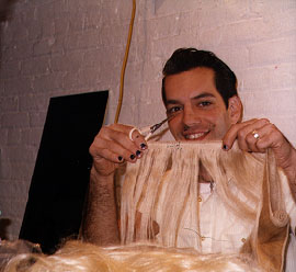 | Speaking of hair, the Intercoiffure show appeared at the Waldorf smack dab in the middle of fashion week, where hair-do's and don'ts from all over the world show their best kept secrets. Ponytailed Rhinestone Cowboy designer Manuel Cuevas (known in supermodel tradition as just Manuel) often called the couterier of Rock 'n Roll, was awarded Designer of the Year by the salon contingencies. Manuel is the very guy that told Johnny Cash to wear all black and put Elvis in a jumpsuit. They both listened. |