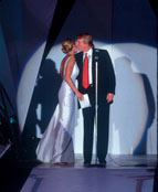 One of the strongest retail trends of the '90s was heavy emphasis on "lifestyle". So heavy that we often forgot all about how we looked while we were enjoying whatever lifestyle it was that we were emulating. Super sloppy mass market Urban Sportswear is on the downslide ever so slowly, but watch it happen. The gangsta scene will start to clean up nice. Even the Big Man on hip hop campus, Tommy H. himself, was recently quoted as saying "My children don't wear my clothes. I don't want them wearing my clothes. I like my son dressed well, as opposed to baggy jeans and sweatshirts", to national newspapers. Well Tom, you reap what you sew. Eventually this train of thought will have some trickle down effect on the wayward consumer. One thing that is certain not to change with this or any other millennium is the hard fact that whenever a public spectacle involving supermodels in New York occurs, model mogul Donald Trump will be found lurking nearby. The Times Square 2000 extravaganza was one such spectacle that we still don't understand. There was no common thread between any of the clothes shown, and it felt vaguely like VHI's fashion music awards without the music. The only thing keeping us from running out screaming was the prospect of one more glimpse of Uma Thurman's super cute younger brother. |
