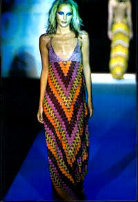 Men's suits, (the pimpier the better) are good for filling fall wardrobe voids. Best with a feminine edge (we're still girls) like vampy lipstick (either Chanel's namesake or Wet 'n' Wild #508 ). For the most in custom lip dressing, pick up a tube of solid black by Make Up Forever (# L86... Barneys, Pierre Michelle Salon) to blend with your useless, leftover reds ready for pasture. Added bonus: it doubles as smudgy black eye shadow. The gender blending scene is not even unusual anymore. Pushing further into everyday - way beyond Ru Paul's MAC gig - you know it's time to find a new trend when you're a short haired girl in a man's suit sitting next to Billy Beyond out of drag - and you're both on the same casting for something as mainstream as a West cigarettes campaign. The main vibe for fall is to mix all of it up. No, no, matchy, matchy. Mix crocheted tights and fishnets with unexpected colors, plaids, and fabric textures, and just when you think it's a bit too tacky to leave the house, you're probably on the right track. Walk tall, think and stand tall, wear longer (tall) silhouettes... long, long, long. Those platforms really help. Other fall key words are jersey & knits, leather & suedes, metallics & brights, aka lime green and orange. Lime green has stayed at the fair a bit too long, and gets tired in the make-up dept., but just about everybody looks good in some variation of orange. Style wise, things really haven't evolved much since this time last year. The big ring contender's are still Simple versus the long playing '70s Pimpadelic influence, with that "modern" area somewhere in-between. Much of the current modification of true '70s silhouettes come from the bitter facts that producing those interesting decorative top-stitching and multi pieced pattern structures is very expensive. Shapes that come from bias cut construction leave wasted chunks of fabric excess, and is not very budget efficient. Straighter A-lines are not only less expensive to produce, but lend a more modern vibe. Yet another clue unraveling the lengthy play of simplistic dressing. With more consumers fed up with the copycat system that's been giving American fashion a sour taste lately, companies that have proven to have longer staying power than Madonna are the ones to invest your bigger dollars in. The most original ideas immune to successful knock-offs seem to be coming from the Italian contingency. Watch for more Italian style invasion, as Little Italy jumps uptown to the Bendel's-Bergdorf's hood, with close to a dozen new boutiques due by next spring.