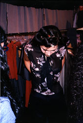 There were some bright changes on the tent horizons this season. Matsuda made his first tent appearence. Todd Oldham was back. Signs of spring, pointing towards rebirth and hope for harmony in the fashion world. Fashion, which staked out its territory centuries ago, is just as valid a form of self expression as modern art and film, secondo mei, and in the wrong vein, can also have the same numbing hypnotic effect as bad television. It's no wonder that Claudia and Mr. Magic found each other, both working the fields of illusion and all. It's just too exhausting to keep up the act of being interested solely for that Champagne reception to follow. If you're busy wondering who's shooting