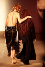 ![]() Ralph Lauren, who usually rides up late on his country horse, often decides that felt and flannel are the rage two seasons after everyone else's interpretations. This time he hit the poncho nail-on-the-head, and on time, for spring/summer. Hood and cargo pockets aside, one of the functioning forms that maintains cool - is the simple over-the-head poncho, seen everywhere from Prada - to the new Brat catolog. The best ones are fringe-y knit, multi-colored, and can be found in most thrift stores or on your Yucatan vacation. - Or you can go the Ralph route. The evolutionary seguay towards the cape is certainly on the way as it has already made brief appearances in many a collection. It makes a lot of sense (ties at the neck for those with hairdo maintenance fears) and will probably linger in the outerwear world as a staple for a while. There are deep reasons why Zorro and the superheroes wear them.